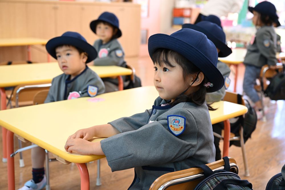 クラスに集まり出席をとります 一人ずつ元気に「ハイ!」とお返事し 日直さんは園長先生にクラスの出欠を伝えに行きます